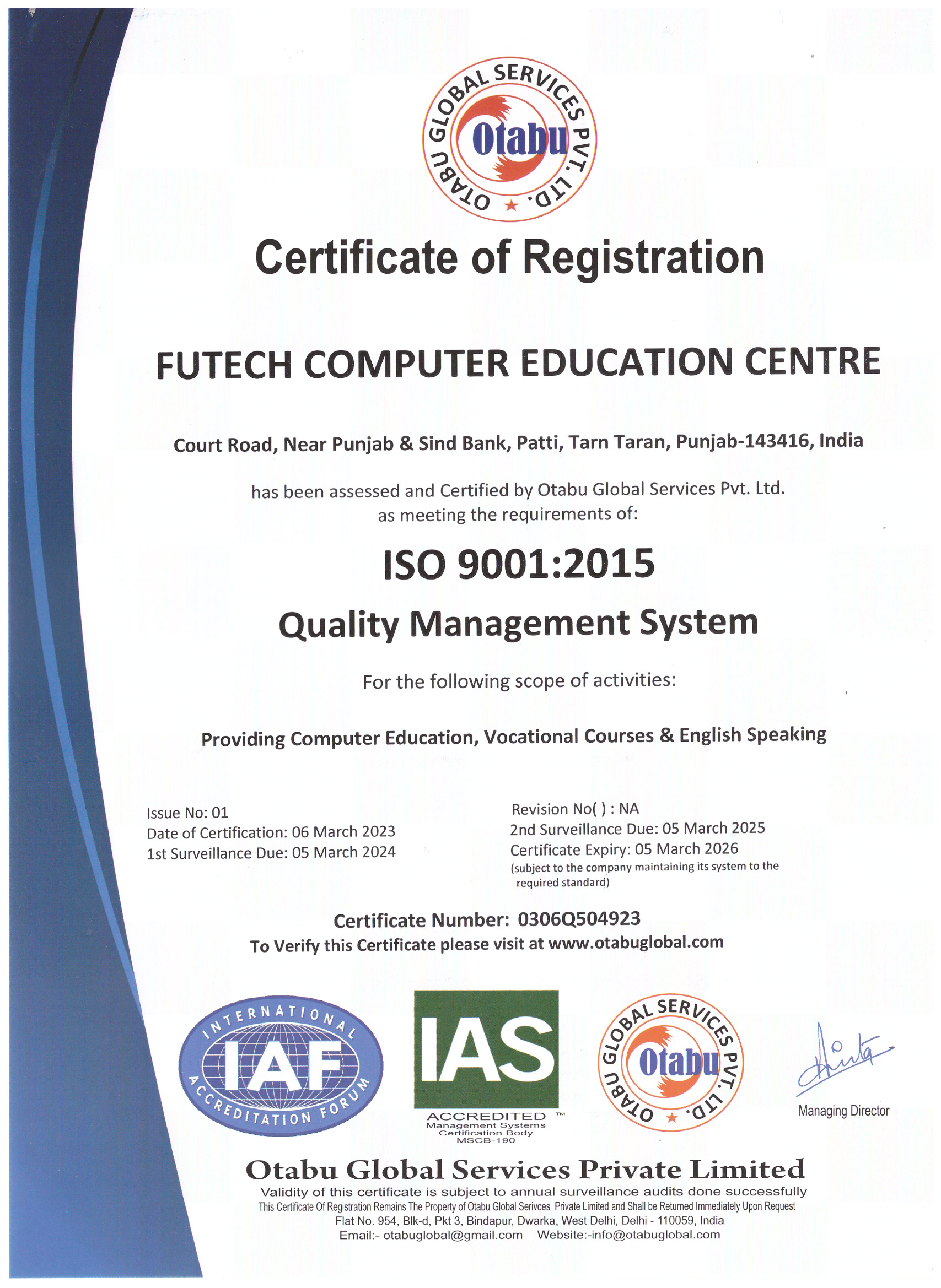 Welcome to Futech Computer Education Centre the cradle of modern computing in India. FUTECH,India's first and only specialist institute for Information Technology Careers. We offer a wide range of computer-related services. We thrive to provide the best services and products at highly competitive price. As your computer partner, we are poised to give you a competitive advantage in today's computer era.